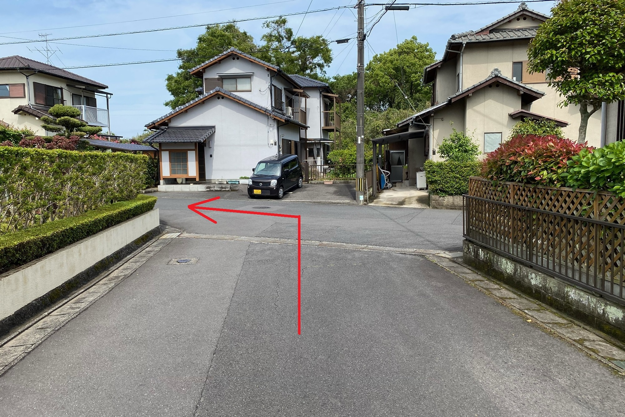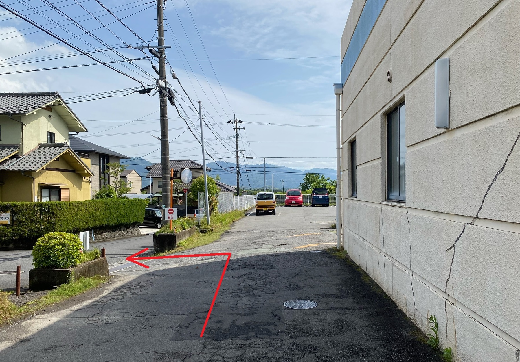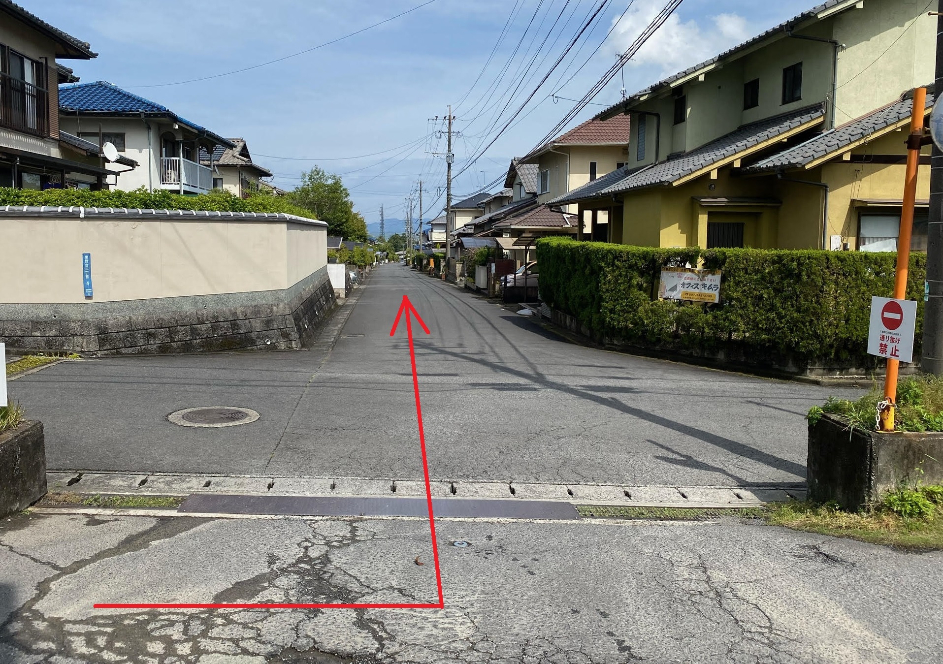 ●トキハインダストリー駐車場から住宅街方面へ左折。