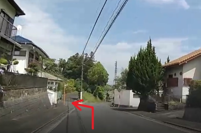 ●住宅街を走行し、左右にカーブミラーがある十字路を左折。