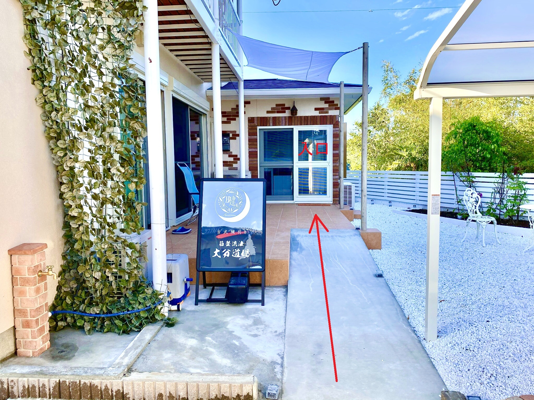 ●スロープの突き当りが入口。